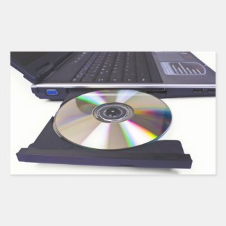 laptop computer with open optical disk drive stickers